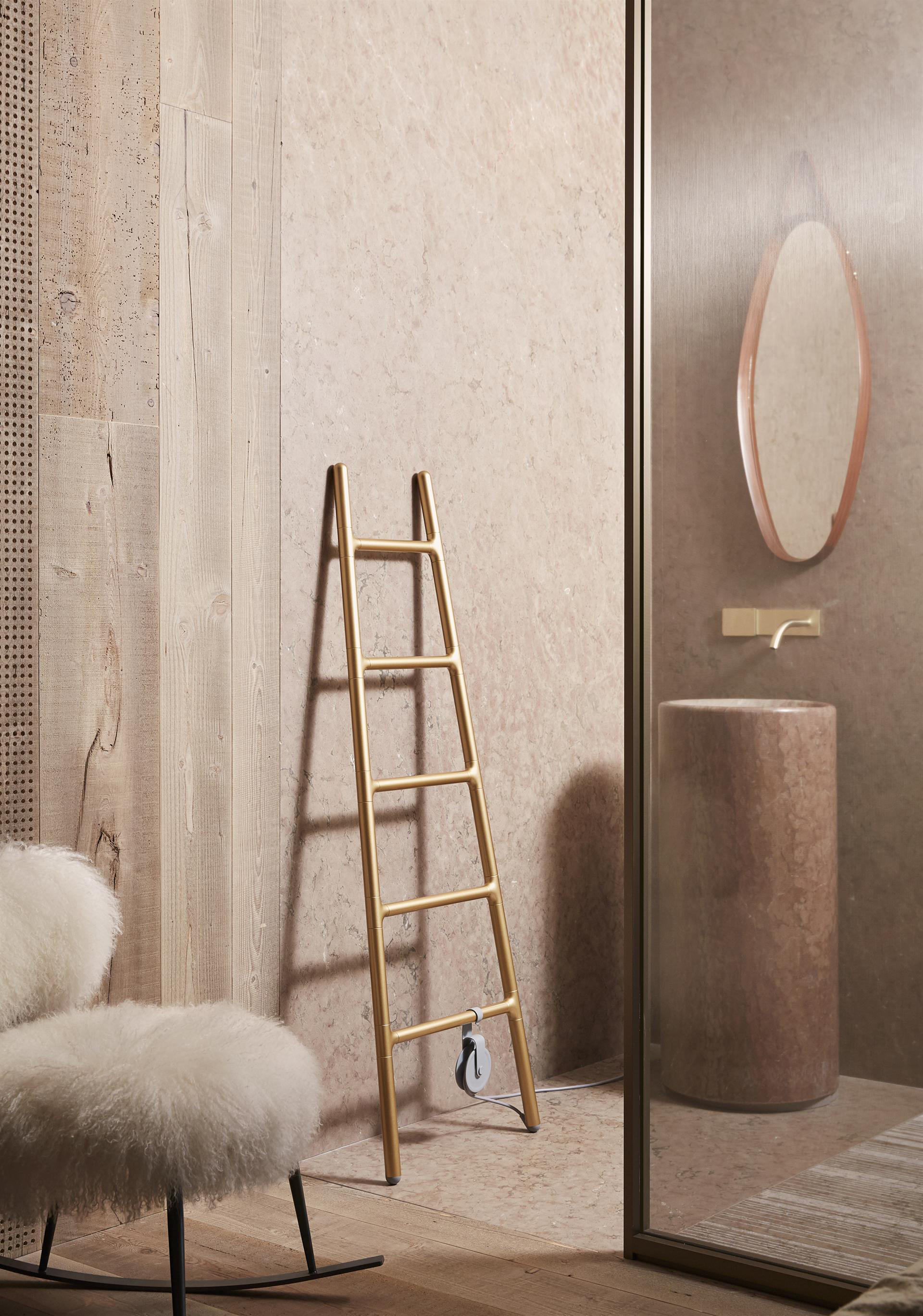 一个超越传统的铝制电采暖式散热器,楼梯的形状使得散热器不再需要安装就可以自由的放置在房间的任何位置。 供暖模式:水