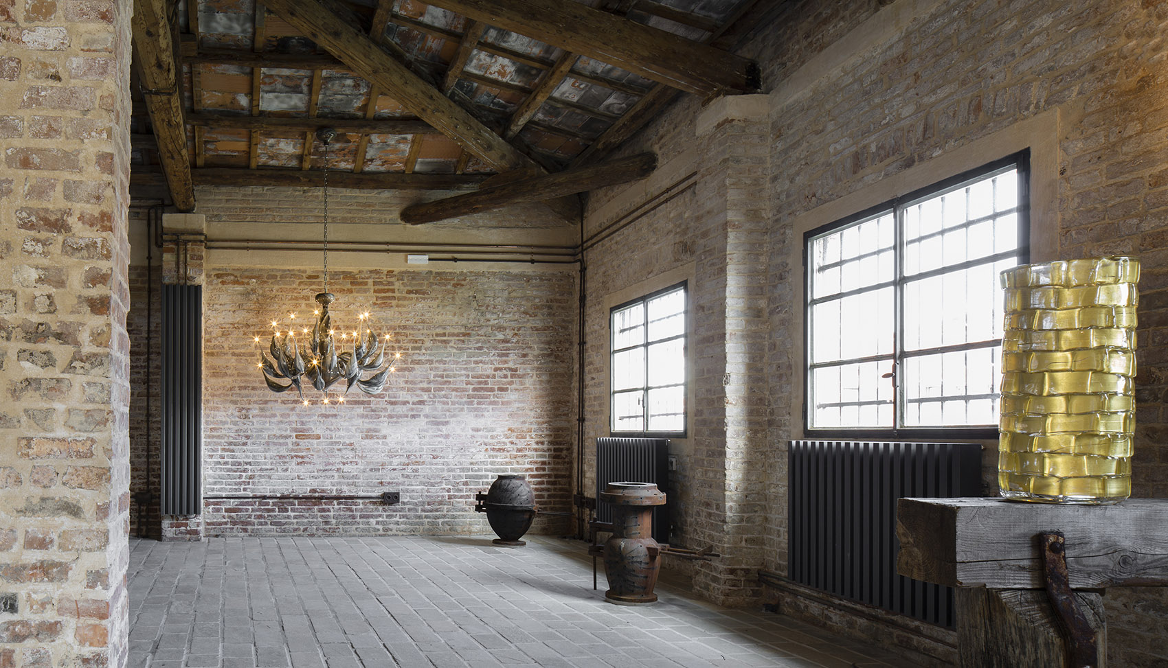 以玻璃吹制师兼设计师Fabio Fornasier四位合伙人协力合作,为画廊打造了全新的室内空间。其中包括带有火炉的场地,以及数个用于举办展览和各种活动的房间。